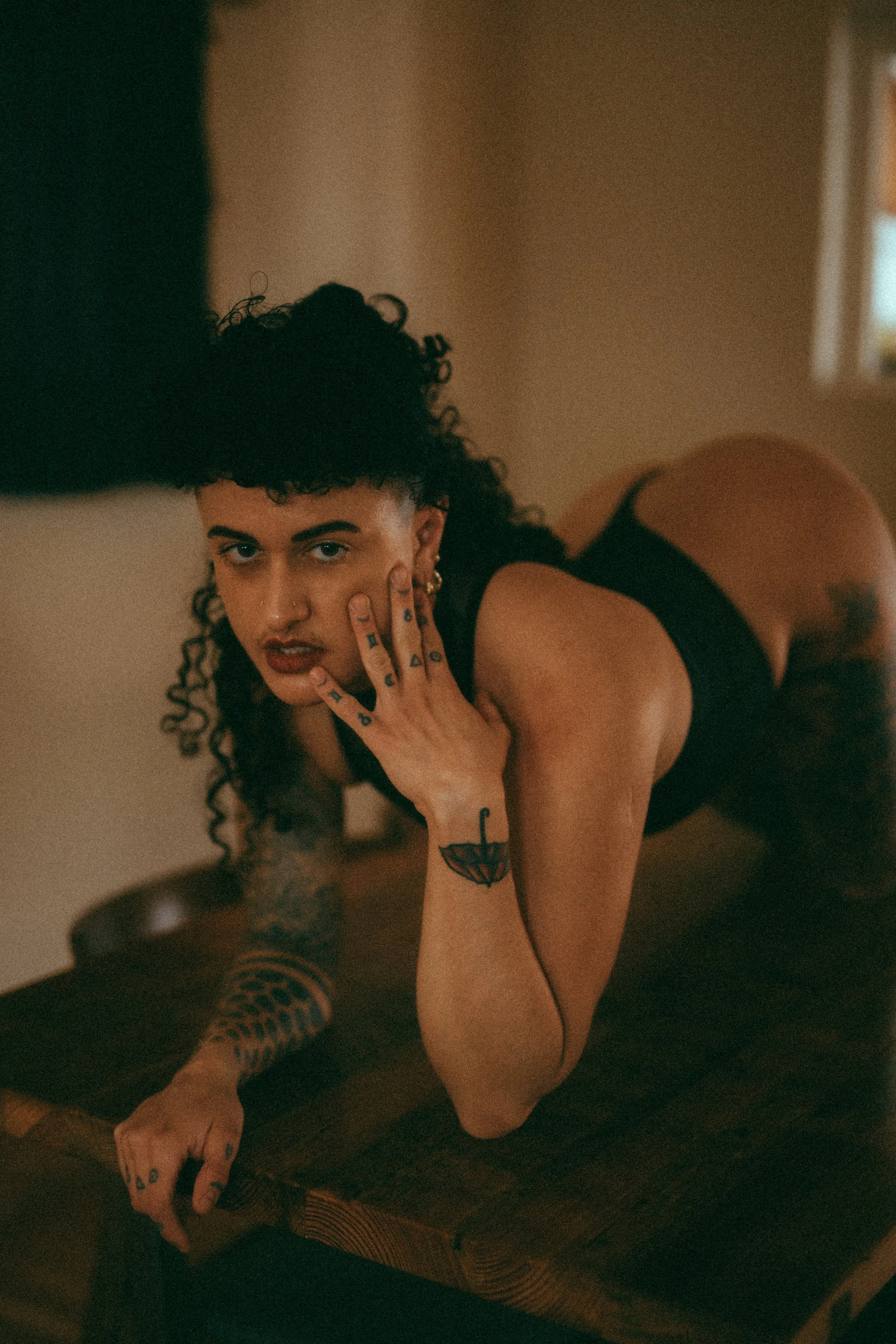 Intricate tattoos envelope my olive skin, wrapping around my arm and coiling up legs. They trace my curves like the gilded edges of a masterpiece. Every inch of me is a temptation, winding lines suggesting places you haven’t yet discovered.
